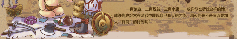 行商任务主要分为两部分:华夏城行商首领处的“商券任务”以及分散在世界各地行商NPC的“行商任务”,整个任务体系的宗旨为:通过完成任务获得各地行商的信任与行商技能以及任务奖励,并在任务中发现各地行商间存在的商路,通过低买高卖来挣取差价。 |