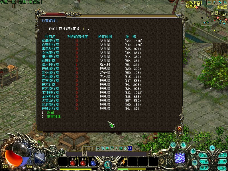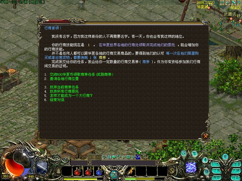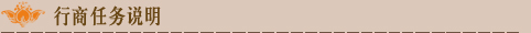 在行商首领处除可以接受商券任务外,还可以进行行商任务系统的相关查询,如:行商坐标、行商任务介绍等。 |