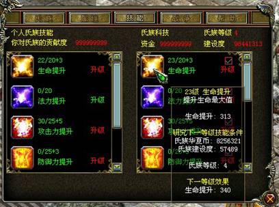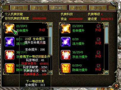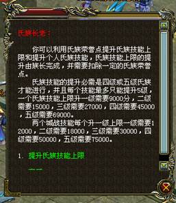 | 如果荣誉点够则氏族技能上限可以提升 |