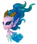 晶莹通透的身体,水蓝妩媚的头发,浪花作裙,水珠作链,身体和尾巴中都流动着柔柔的水光… …