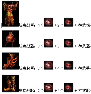 让我们以战士套装为例,就可以对套装的合成一目了然啦。