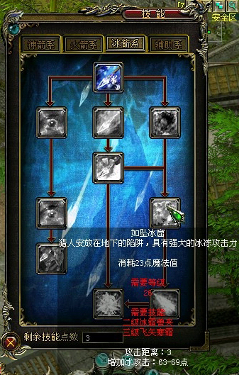 ·战士可以修炼刀剑、枪斧两个系列的技能;术士可以修炼电、火、冰三个系列的技能;猎手可以修炼神箭、火箭、冰箭三个系列的技能